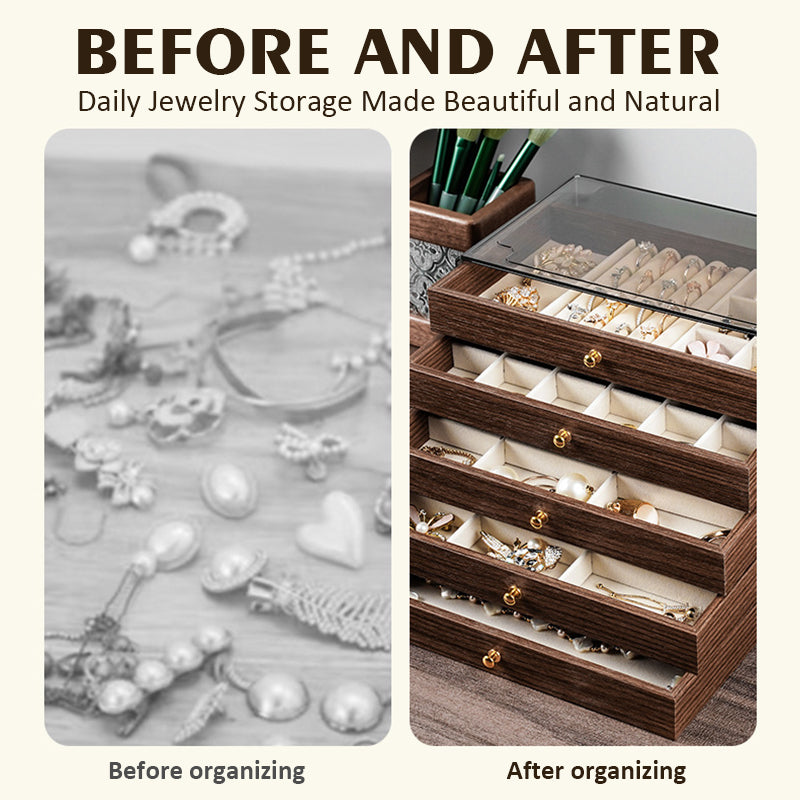 2025 Ny luksuriøs 5-lags smykkeskrin i valnøttre ✨