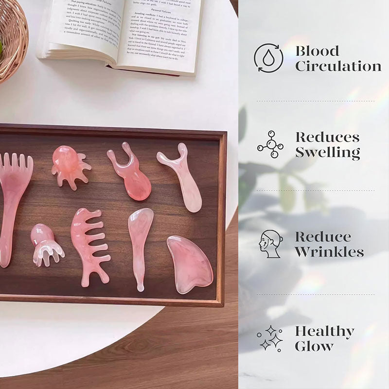 Skjem bort huden din med den beroligende berøringen av naturlig rosenkvarts 💖. Dette skjønnhetsverktøyet er håndlaget og polert til perfeksjon, og kombinerer tradisjon og eleganse for å forynge ansiktet og kroppen din når som helst, hvor som helst.