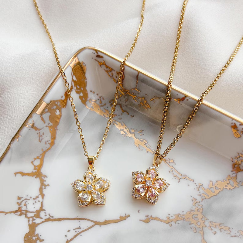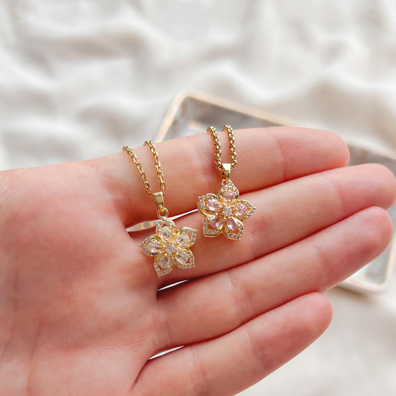 🌸Bauhinia Zirkon Halskjede – Roterende, Stilig og Glitrende