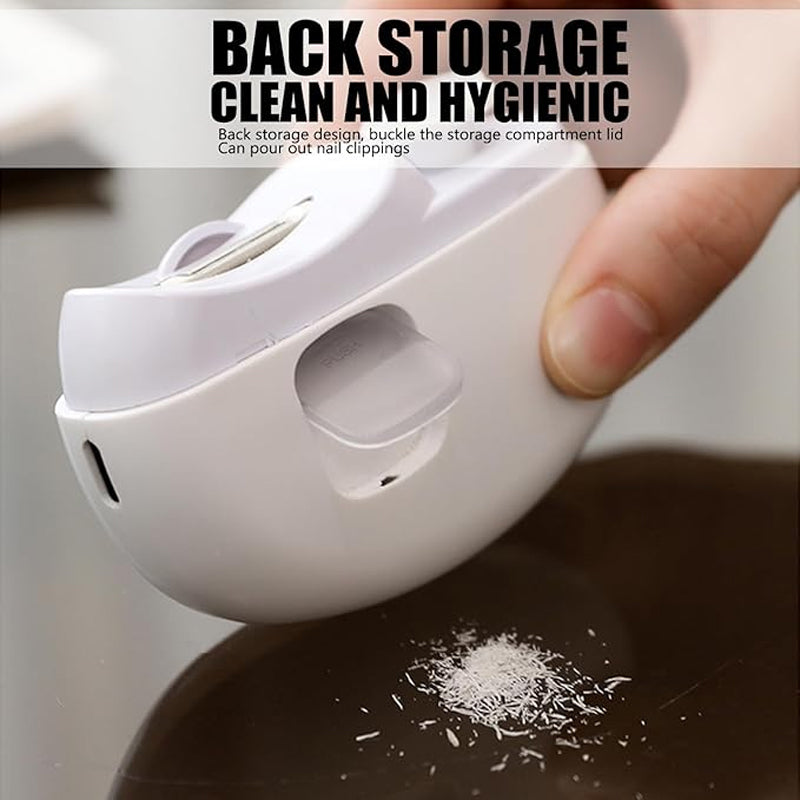 Oppbevaringsrom på baksiden: Den innovative oppbevaringsdesignen på baksiden samler opp negleklipp for enkel opprydding; bare løft dekselet for å tømme.