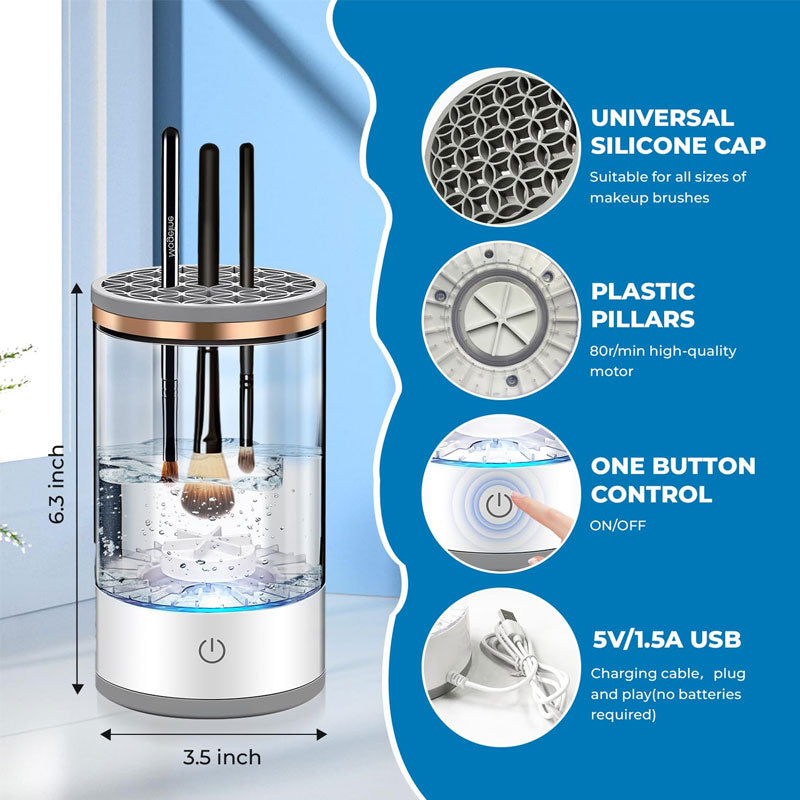 Er du klar for rene, tørre børster på få minutter? Den elektriske sminkebørsterenseren forvandler rengjøringsrutinen din og gjør den raskere, enklere og mer effektiv. Rene børster gir feilfri sminke – hvorfor nøye seg med mindre?