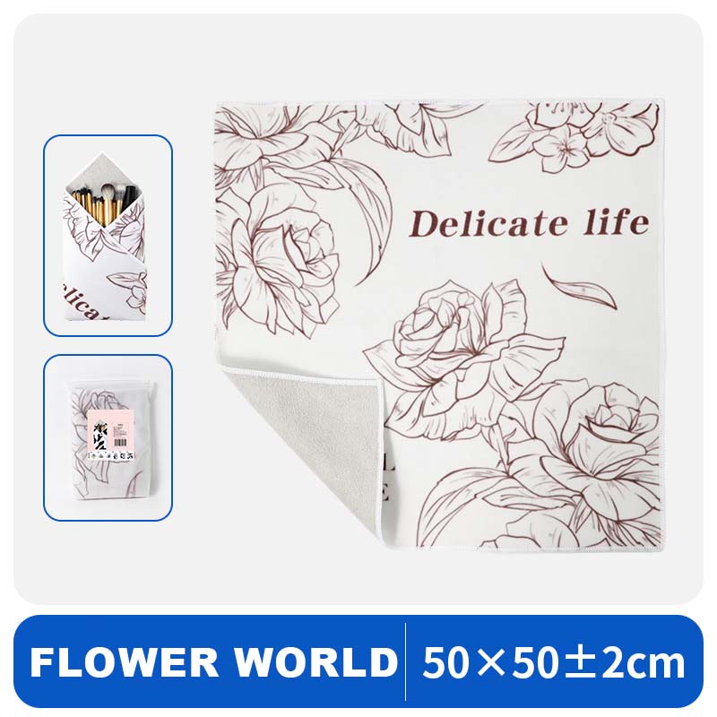 - En duk, mange bruk: Bruk den til å pakke foundation, blusher, pensler eller even små leppestifter. Den passer også til reiser, bagger eller hyller – fleksibel for alle behov.