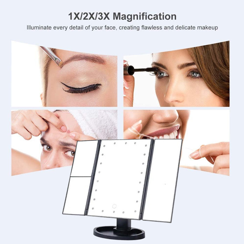 {Gratis Frakt}Tre-sidig sammenleggbart Led-sminkespeil