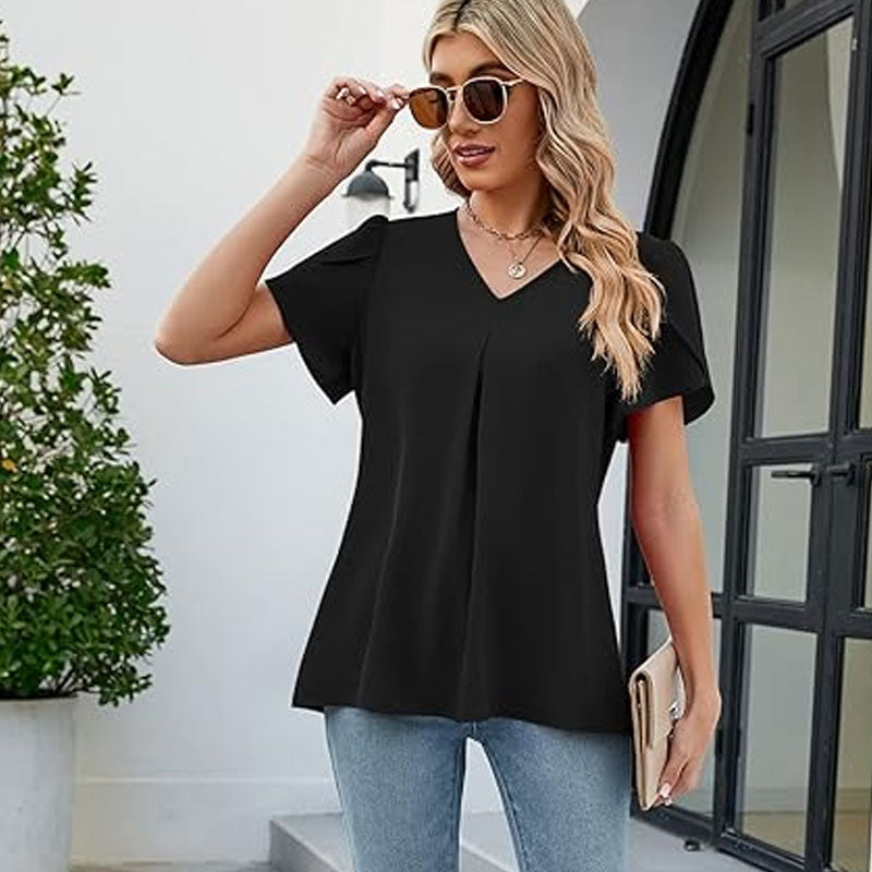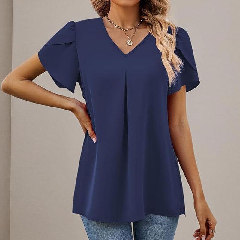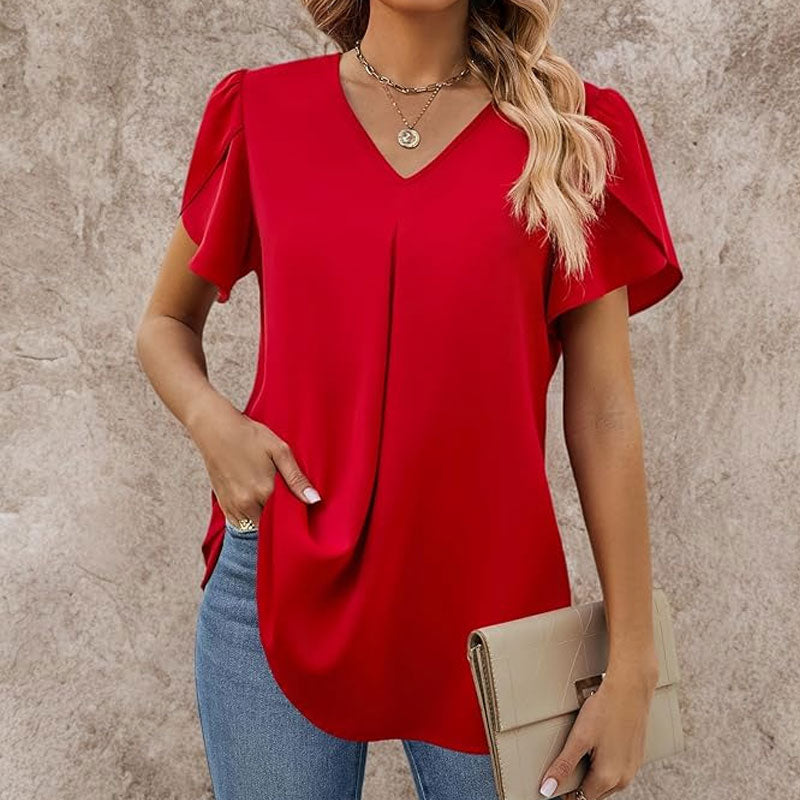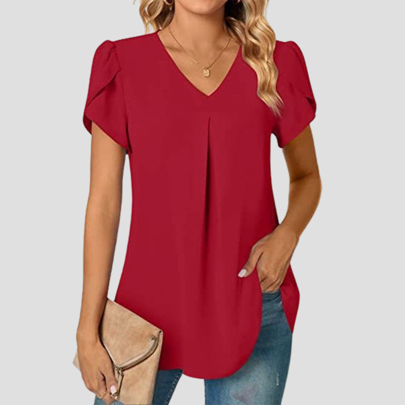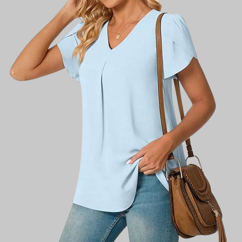 🌸Enkel skjorte med V-hals og ermer