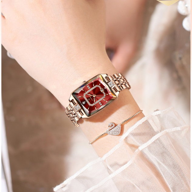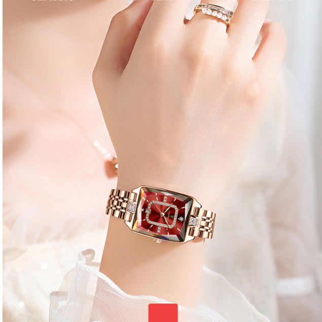 - 1 x Firkantet luksus vanntett moteklokke for kvinner
