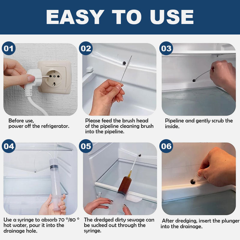 Si farvel til tette avløpshull, vannansamlinger og ubehagelig lukt! Vår Refrigerator Unclogger er den ultimate løsningen for å opprettholde et rent, effektivt og luktfritt kjøleskap. Den er enkel å bruke, universelt kompatibel og svært effektiv, og er et must-have for alle hjem!