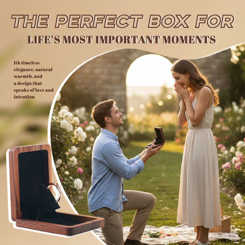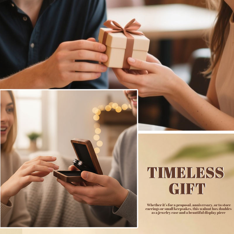 Øyeblikk som frierier og jubileer kommer ikke to ganger. Ikke risiker en «glembar» presentasjon. Denne smykkeskrinet i valnøtt er laget for å gjøre små detaljer til store minner – og det selger raskt blant par som forbereder seg på forlovelsessesongen.