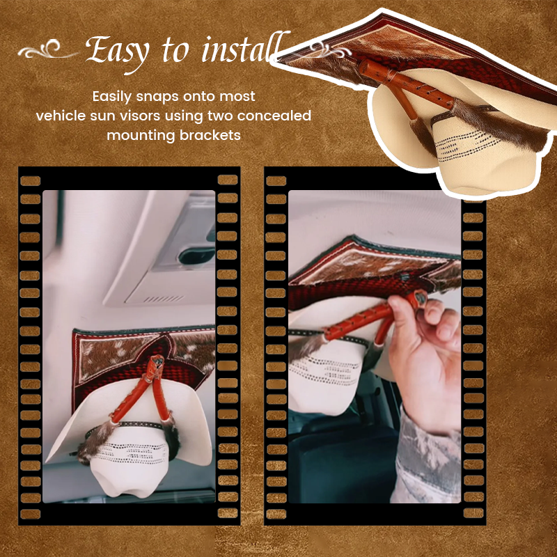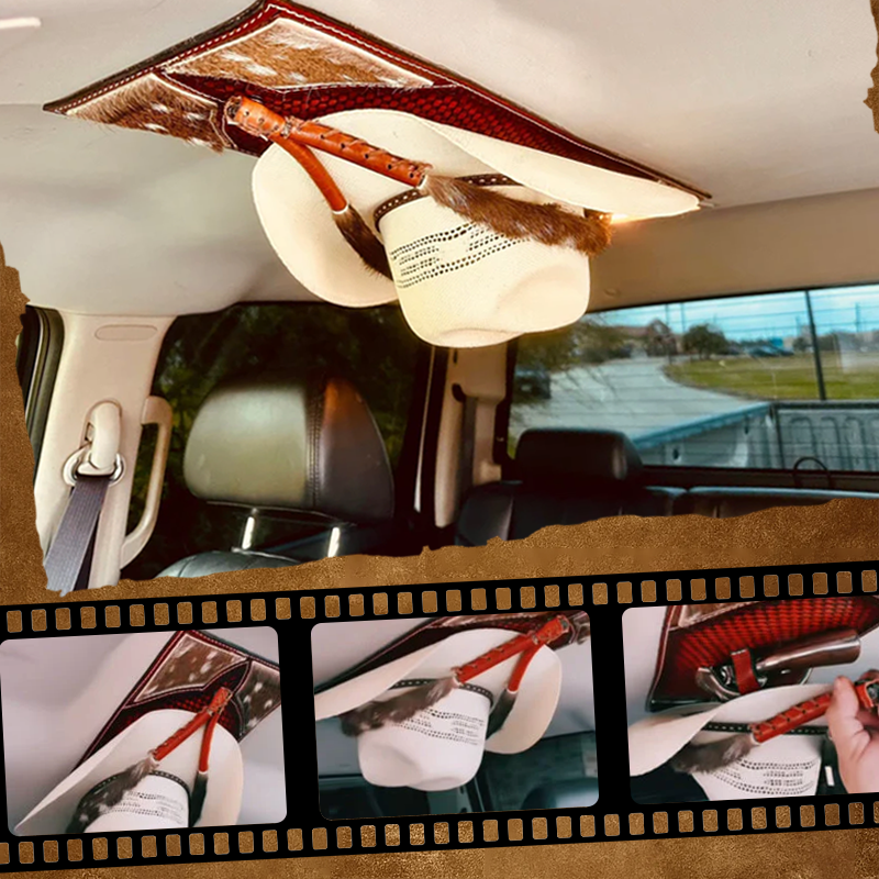 Lei av solbriller som glir under setet, hatter som blir knust, eller rot som tetter visiret? Møt Western Leather Visor Organizer – en stilig og slitesterk løsning som holder hverdagsutstyret ditt lett tilgjengelig, samtidig som den gir bilen klassisk cowboy-stil.